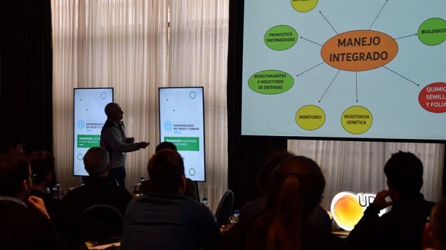 Mientras comienzan a aparecer las primeras afectaciones, UPL Argentina convocó a un taller de manejo de enfermedades en trigo y cebada que fue coordinado por el fitopatólogo de la FAUBA, Marcelo Carmona, y se realizó en Mar del Plata. "El objetivo es brindar herramientas para que productores, asesores y distribuidores puedan tomar decisiones adecuadas a la hora de hacer un manejo sustentable en los lotes", dijo Andrés Fabbris Rotelli, gerente de fungicidas de UPL.