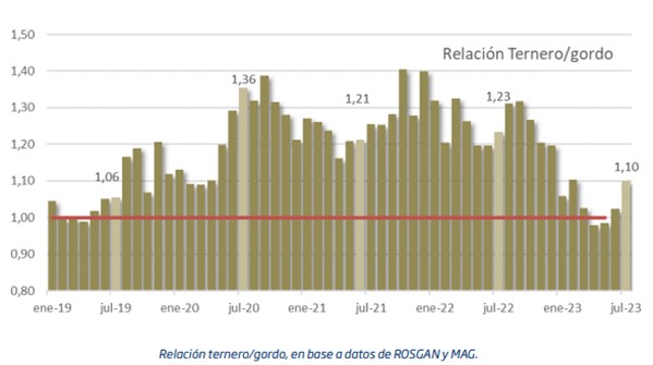 Este cambio de tendencia comienza a revertir la relación ternero/gordo que hasta entonces se encontraba en los mínimos históricos.