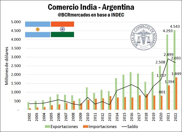 Asimismo, en los últimos años la India ha realizado negocios con Argentina por pellets y harina de soja y girasol, por cerca de US$ 70 millones al año. No conforme con ello, este país recientemente se ha abierto como mercado a la yerba mate de la Argentina.