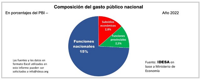 Para ilustrar la diferencia entre ajuste y ordenamiento sirve observar la composición del gasto público nacional. En el año 2022 el gasto primario de la Nación ascendió a 20,3% del PBI y se distribuyó de la siguiente manera: