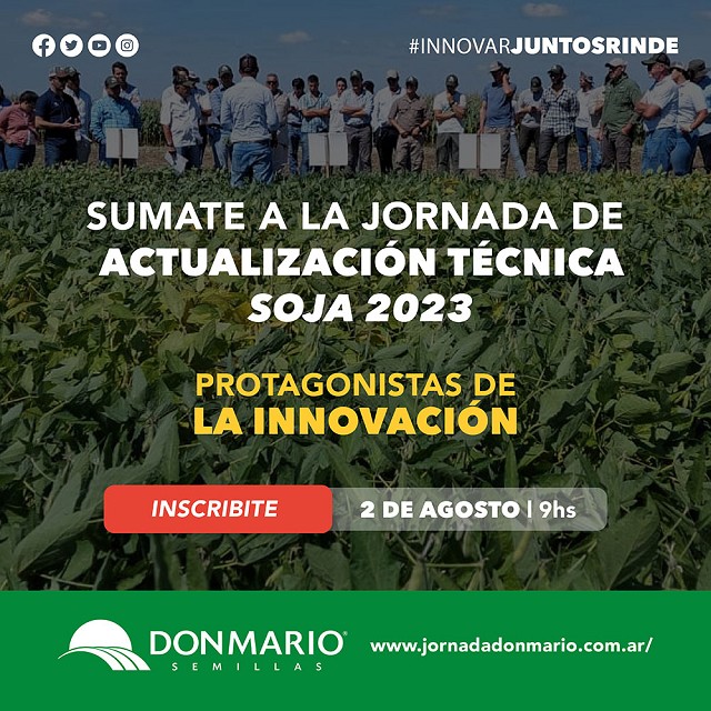 A lo largo de los 40 años de historia de DONMARIO, la innovación ha sido su norte y lo que la llevó a convertirse en líder en investigación y genética en semillas, en un círculo virtuoso que se completa con los productores que apuestan a la implementación en su campo de las últimas tendencias. Protagonistas de la innovación es el lema de esta 26° edición de la tradicional Jornada de Actualización Técnica (JAT), que se desarrollará el 2 de agosto desde las 9 am, via streaming en el sitio www.jornadadonmario.com.ar