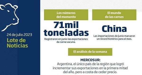De acuerdo a los datos oficiales publicados recientemente por el INDEC, de enero a junio de este año Argentina registró embarques por 327,2 mil toneladas de carne vacuna, unas 26 mil toneladas más que las exportadas en igual período de 2022.