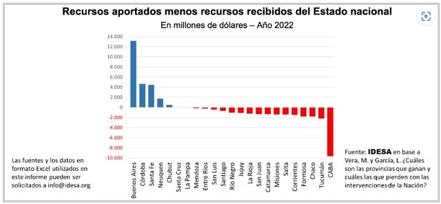 Las restantes 14 provincias reciben más recursos del Estado nacional que impuestos que aportan (la mayor es CABA y las provincias del norte).