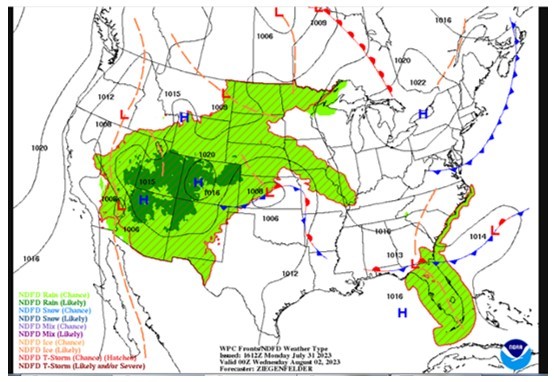 Las predicciones que auguran más humedad y menores temperaturas han modificado el cuadro de escepticismo sobre la producción estadounidense. A ello, se agregan las recientes lluvias registradas sobre el centro y el norte de las Grandes Planicies, que avanzan sobre el sur de Iowa y sobre Missouri.