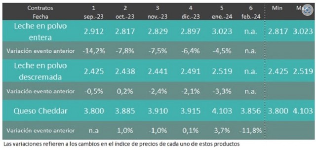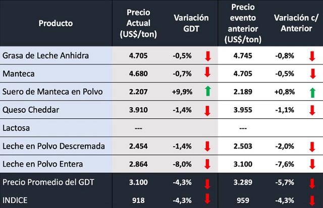 La baja más notoria ha sido en la leche en polvo entera, la cual ha alcanzado el valor más bajo desde mayo del 2020.