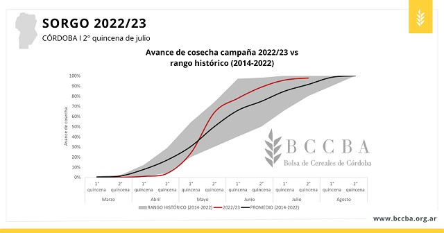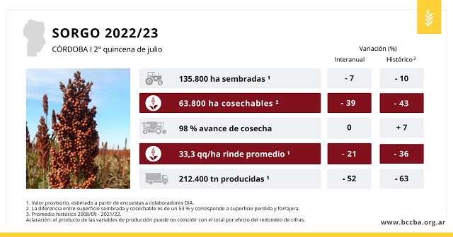 Sólo queda el 2 % de los lotes de sorgo para finalizar con la campaña del cereal, la cual se caracteriza por poseer el menor rendimiento promedio provincial desde la campaña 2008/09.