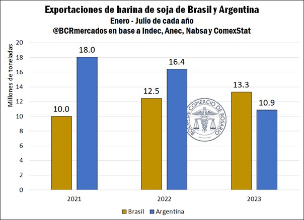 Las previsiones que se hacían desde este Informativo hace algunos meses lamentablemente comienzan a hacerse realidad. En lo que va del año, las exportaciones de harina de soja desde Brasil superan el volumen embarcado desde la Argentina. De esta manera, nuestro principal socio comercial desplaza al país como primer exportador global de harina de soja por primera vez desde la campaña 1997/98.