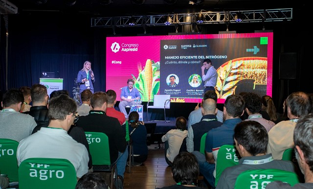 Bonelli y Pagani hablaron sobre el manejo eficiente del nitrógeno. Explicaron cuánto aplicar, dónde y mostraron las mejores maneras de hacerlo, con ejemplos y números concretos, obtenidos luego de haber relevado más de 75 lotes agrícolas con más de 15.000 hectáreas, desde el norte de Salta hasta el sudeste bonaerense.