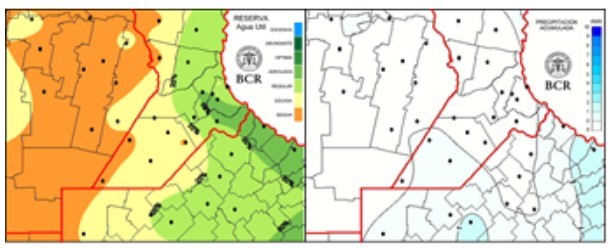 En el centro/oeste de la región se necesitan entre 40 a 120 milímetros para alcanzar el estado óptimo de las reservas de agua del suelo. Mientras que en la franja este los valores se reducen a montos entre 10 y 40 mm.
