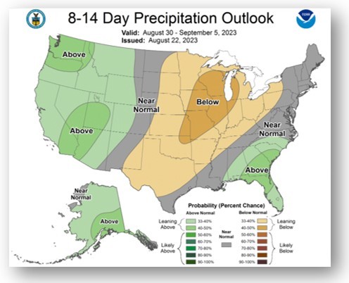 En el que sigue, también, la situación es compleja, sobre todo para la mayor parte del cinturón maicero/sojero. Este va del 30 de agosto al 5 de septiembre.