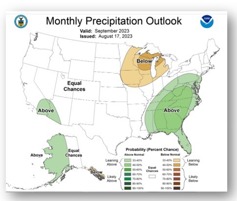 Y en el que sigue a continuación, cubre todo el mes de septiembre. Y hay una cierta probabilidad de que las lluvias queden por debajo de los usual en
