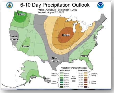 El segundo punto se refiere al clima en EE.UU. Como sabemos es un elemento vital en los rendimientos del maíz y de la soja, pues las de estos días son fechas definitorias. Y, por ende, central en la formación de los valores internacionales.