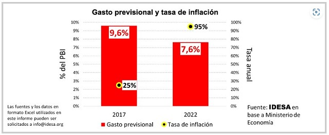 En el 2022 la inflación subió a 95% y el gasto previsional bajó a 7,6% del PBI.