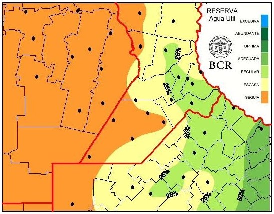 Hace dos semanas atrás, casi la mitad del cultivo se encontraba en muy buenas condiciones. Hoy 100.000 hectáreas se conservan en este estado, es decir solo el 10% de la siembra. La falta de agua que arrastra el cultivo llevó a los cuadros regulares de 15 a 22%. El resto aún se conserva en buen estado. Desde Carlos Pellegrini dicen que cultivo sigue subsistiendo. La estructura de la planta se está debilitando día a día a causa del estrés hídrico y se suma el efecto de la alternancia térmica. Las lluvias pronosticadas para el fin de semana son claves señalan todos los técnicos en la región, aunque para algunas zonas el rendimiento potencial ya estaría afectado. “La producción ya no va a ser la esperada”, dicen C. Pellegrini. Desde Colón también coinciden y advierten que las lluvias no deben fallar. En Corral de Bustos con 30 milímetros los cuadros regulares y buenos mejoran, pero se necesita que siga el agua.