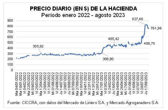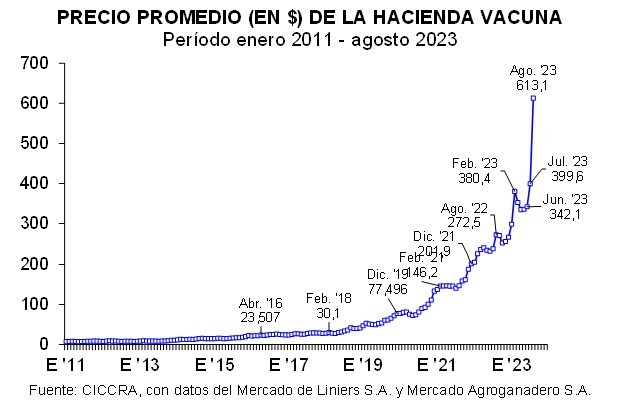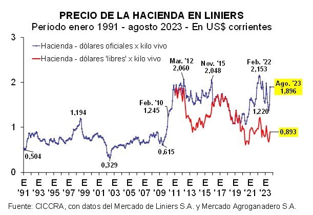 En agosto el salto devaluatorio desordenado que dispusieron las autoridades económicas provocó (lógicamente) una nueva aceleración del ritmo de aumento de los precios internos, y el valor de la hacienda en pie no fue una excepción.