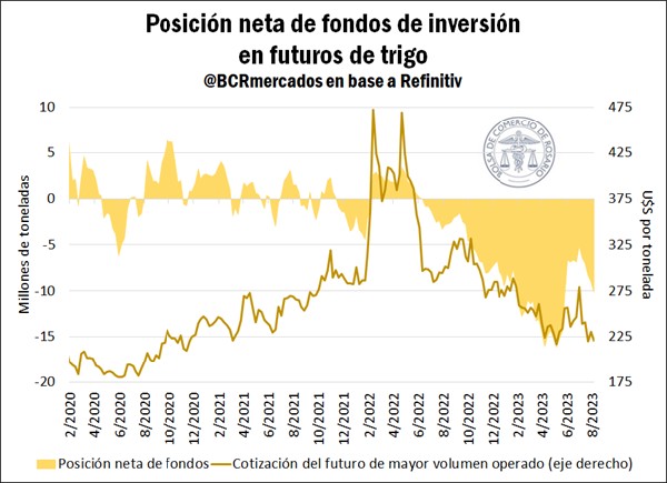 Los fondos de inversión de trigo operan netamente vendidos hace más de un año, y acentuaron su tendencia durante el último mes