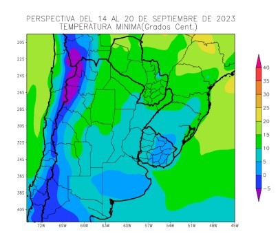 La perspectiva comenzará con temperaturas bajo lo normal debido a la entrada de aire polar en los días precedentes, con heladas generales en el oeste del área agrícola y heladas localizadas en gran parte de la franja atlántica, mientras el centro observará registros térmicos más benignos.