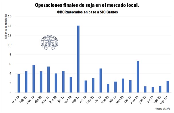 Este volumen, no sólo supera ya al acumulado mensual del mes de agosto, sino que equivale prácticamente a la suma de julio y agosto combinados, y resulta el más alto desde el mes de mayo, coincidente no sólo con la cosecha anual de soja sino también con la vigencia del Programa de Incremento Exportador III (el último que incluyó a la oleaginosa entre sus productos).