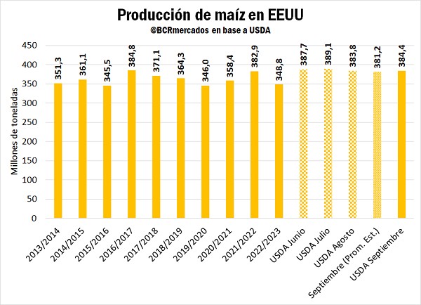 Además, ya habiendo finalizado la 2022/23 en EEUU, los números finales de exportaciones de esa campaña fueron algo superiores a lo estimado por el USDA, con lo que los stocks finales de la campaña quedaron por debajo de lo anticipado el mes pasado.