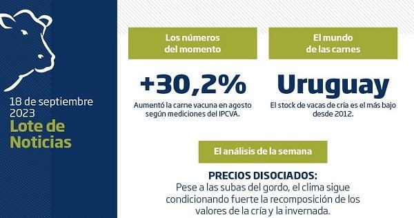 Durante agosto, incluso previo a la devaluación post PASO, el precio de la hacienda en el mercado de Cañuelas mostró un muy fuerte incremento, descomprimiendo así un período de varios meses de retraso. El novillito liviano que en las dos primeras semanas de agosto rondaba los $650 a $670 el kilo, tras la devaluación, picó fuerte con alzas de más de $200 el kilo, llegando a marcar máximos superiores a los $900 el kilo vivo.
