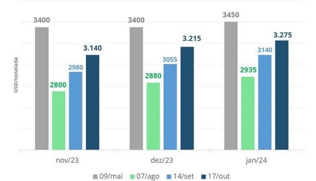 En esta segunda licitación de octubre 2023 del Global Dairy Trade, la leche en polvo entera -el principal producto de interés para Sudamérica- ya se situó cómodamente por encima de los 3.000 dólares por tonelada