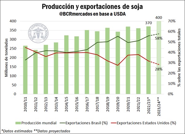Adicionalmente, el organismo recortó la producción global de la oleaginosa como consecuencia de la menor producción estadounidense, manteniendo sin cambios los suministros de Argentina, Brasil y Paraguay. En cuanto a las exportaciones, se proyecta una caída en las ventas de Estados Unidos a causa de una mayor competitividad de los países de América del Sur, principalmente Brasil.