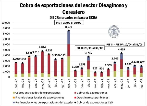 A pesar de las reiteradas ediciones del Programa de Incremento Exportador (PIE) que el gobierno viene implementando desde septiembre del año pasado para dinamizar la venta de los productores y la liquidación de divisas del sector, se vislumbra una desaceleración en el ritmo de liquidación de divisas. No obstante, y a pesar de las críticas de muchos referentes del sector por sus problemas e interferencias en el funcionamiento del mercado de granos, los programas cumplieron su cometido de adelantar ingreso de dólares del agro, dado que en los momentos en que se implementó el Programa, aumentó fuertemente la prefinanciación y los cobros anticipados de exportaciones, lo cual generó alivios – al menos transitorios – en las cuentas del Banco Central.