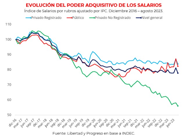 Lautaro Moschet, Economista de la Fundación Libertad y Progreso dijo que "está claro que el rumbo de la actual política económica nos conduce a un país cada vez más empobrecido. La inflación carcome a los salarios, y afecta con mayor agresividad al sector informal. Por lo tanto, se combinan ambas problemáticas: la falta de una moneda estable, que mantenga el poder adquisitivo de la gente, y por otro lado la falta de empleo formal producto de la presión tributaria hacia el sector privado. El resultado de esto es que cada vez más gente cae bajo la línea de pobreza y es más difícil salir de esa situación.