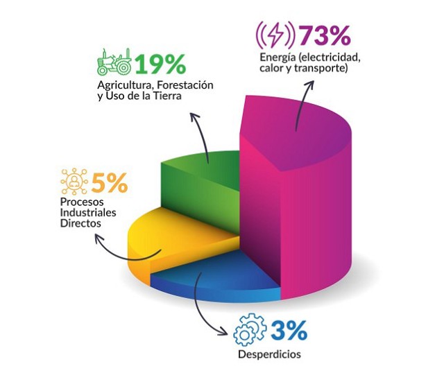 Existen numerosas fuentes de información sobre la participación de los responsables de las Emisiones sea tanto en donde se originan (Países o Regiones) como los distintos sectores que las provocan. De ellas surge claramente que entre el 78/85 % de las emisiones de GEI se producen en China, el resto de Asia, UE, USA e India y también hay coincidencia en que globalmente los sectores vinculados a la Energía y uso de Combustibles Fósiles son responsables del 72/75% y se atribuye a la Agricultura, Forestación y Uso del suelo entre un 15 y 18 % de las emisiones totales y los últimos datos de FAOSTAT marcan un 12/13 % de las emisiones como de origen Agrícola.