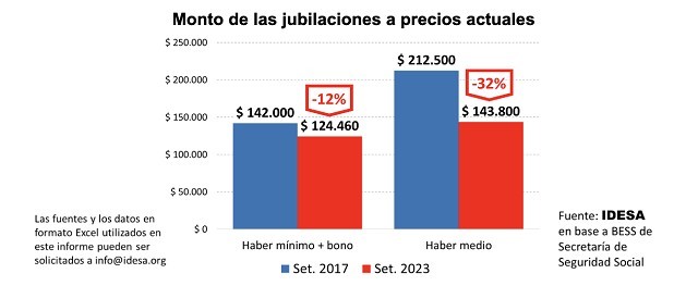 - La jubilación media se redujo un 32% ya que pasó de $212.500 a valores actuales a solo $143.800 en setiembre del 2017.