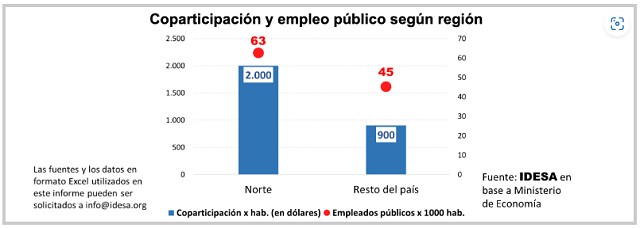Las provincias del norte tienen 63 empleados públicos cada 1.000 habitantes cuando el resto de las provincias tiene 45 empleados públicos cada 1.000 habitantes.