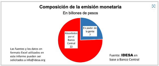 El stock de emisión monetaria existente asciende a 29 billones de pesos.