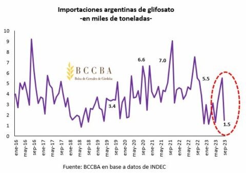Como se mencionó al comienzo, el mercado externo de los herbicidas también presenta complicaciones. En particular para el glifosato, la importación en el mes de septiembre del corriente año fue de 1.500 toneladas, un 73% menos que en septiembre de 2022. Asimismo, este valor se posiciona como el más bajo de los últimos 4 años.