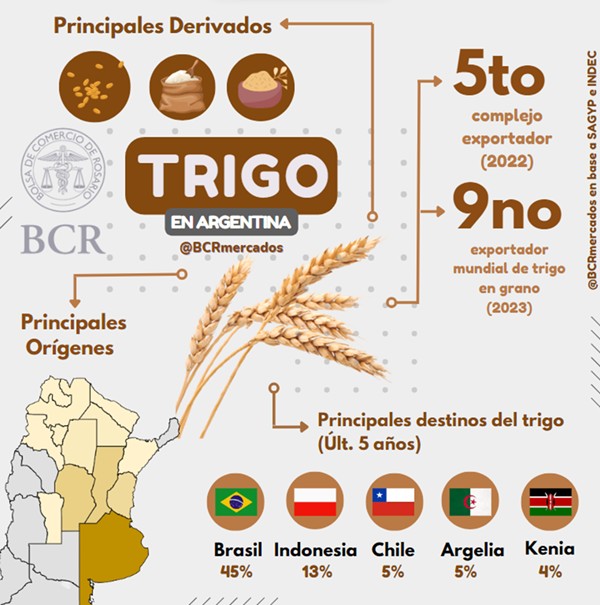 Por sus ventajas comparativas y competitivas, Brasil es un destino de peso para el trigo argentino. No obstante, Chile, Indonesia, Argelia y Kenia, entre otros destinos de lo más disímiles entre sí, también son clientes relevantes para las exportaciones trigueras.