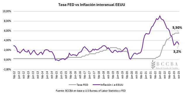 La política llevada a cabo por la FED estaría dando resultados. En términos de precios, los mismos ya venían disminuyendo, el dato referido al mercado laboral refuerza la efectividad de la política en la economía norteamericana. Estos resultados junto con la disminución en el precio del petróleo advierten que, a priori, no serían necesarios nuevos ajustes de políticas que tornen la actividad económica mundial en un escenario aún más recesivo. Sin embargo, el contexto geopolítico actual, si algo no asegura, es estabilidad. Cómo evolucionan los conflictos actuales y las acciones que tomen los actores involucrados, pueden generar impacto en los mercados.