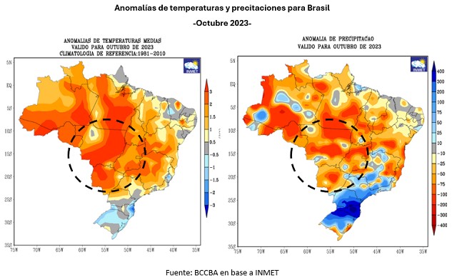En las últimas ruedas diarias el precio de la oleaginosa mostró una corrección respecto a la suba anteriormente mencionada, en línea con pronósticos más favorables del clima en Brasil. Para noviembre se prevén precipitaciones, principalmente, en la región centro-sur la cual representa el 88% de la producción brasileña de soja. Sin embargo, las temperaturas se prevén elevadas y por encima de la normal.