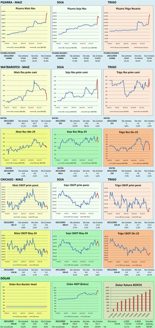 Pero la duda es si es mejor tomar el dólar 50/50 para vender remanentes de físico hasta el 10 de diciembre a 610 o esperar al shock que se supone nos traerá Milei a 650 $/USD. Si bien lo segundo es Más tentador, en teoría sería posible capitalizar la diferencia del tipo de cambio más alto vendiendo ahora, y el de la devaluación posterior, dolarizando el cobro. Incluso si queremos volver a quedar atado a la evolución de precios de los granos, se podrían comprar futuros. El problema es como dolarizarse, y hoy prima la decisión de aguardar.