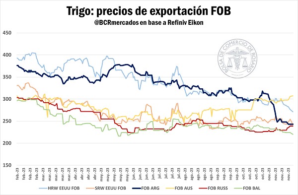 Las cotizaciones FOB de un selecto grupo de países exportadores muestran una tendencia hacia la convergencia de los “niveles rusos” de precios, inclusive el empalme del trigo argentino marcó una caída abrupta durante las últimas ruedas.