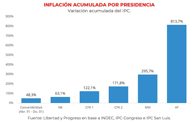 Esto mismo puede observarse al analizar la inflación acumulada por presidencias.