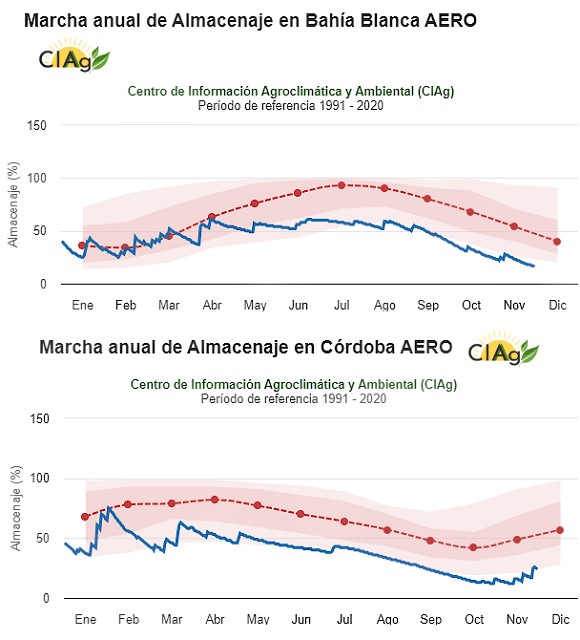 "Por otro lado, en Bahía Blanca, el almacenaje de agua permanece muy por debajo de los valores medios, y continúa en un proceso de desecamiento desde la primavera. Una situación similar se observa en la localidad de Córdoba, donde el almacenaje se encuentra en franco retroceso desde el otoño", añadió Gastón.