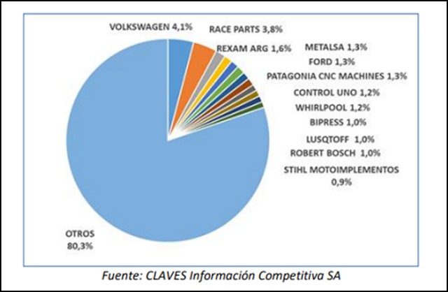 En el mercado de importación existen alrededor de 1000 empresas que ingresan máquinas y herramientas. En este caso se observa una alta atomización entre muchos participantes siendo el principal jugador Volkswagen con el 4,1%, seguido por RaceParts con el 3,8% del total del año y en tercer lugar aparece Rexam con 1,6% del total.