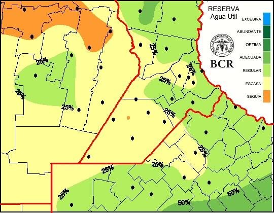 Y si bien hubo una mejora notable con las lluvias de los últimos 45 días, el 40% de los suelos de la región está con niveles de humedad (en el primer metro) de escasez y un 10% con sequía aún.