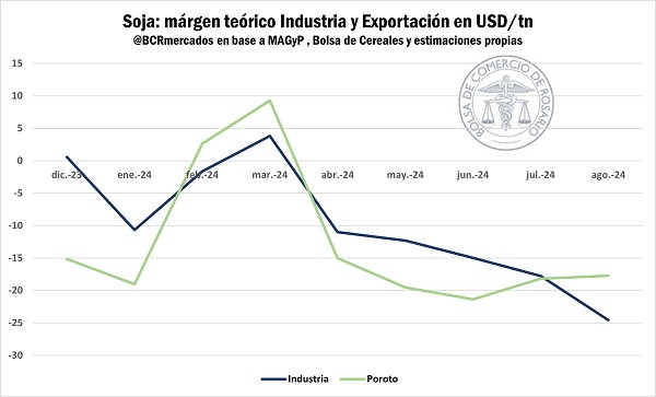 La escasez de la oleaginosa se ha hecho sentir durante todo el curso del año, y ha llevado los márgenes exportadores, tanto para la industria como para la exportación directa de poroto hacia terreno negativo, exceptuando intervalos atravesados por los programas de incremento exportador (Informativo N°2127).