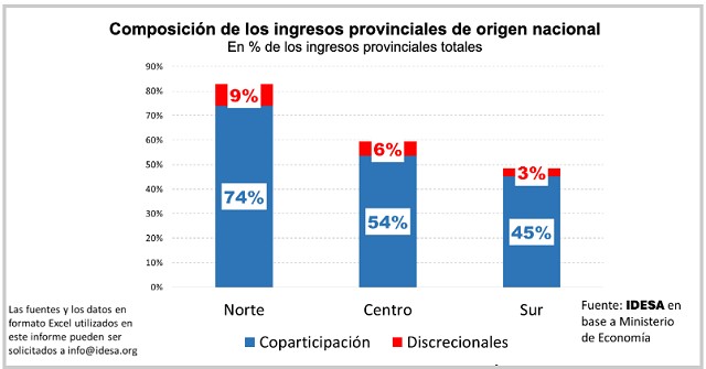 Las provincias del norte obtienen el 74% de sus ingresos de la coparticipación y un 9% adicional de transferencias discrecionales de fondos nacionales.