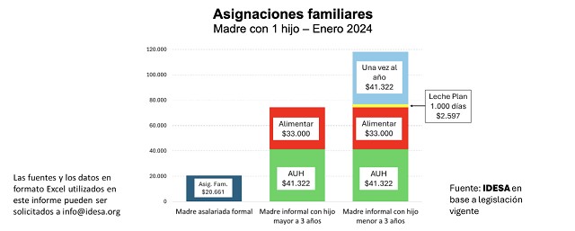 Si no trabaja o tiene un empleo informal recibe $41.322 de la AUH más $33.000 del Programa Alimentar.
