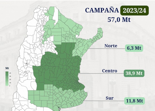 La segunda región en importancia en cuanto al volumen producido es la Región Sur, en donde se producirían esta campaña 11,8 Mt, un aumento de 15% interanual y de 38% respecto del promedio. Esta recuperación está explicada principalmente por el centro-sur de Buenos Aires, que aumentaría su producción 2,1 Mt entre campañas.