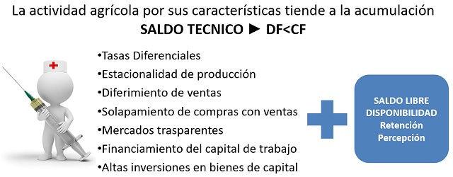 En definitiva: las empresas agropecuarias no solamente tienen en muchos casos saldos inmovilizados de IVA, sino que también deben anticipar el pago del impuesto para generar un nuevo crédito, conocido como “saldo de libre disponibilidad”.