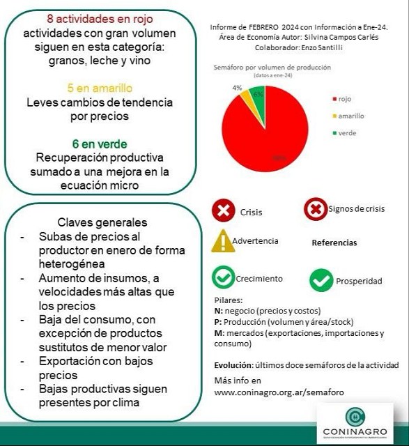 Aún siguen vigentes los efectos de la sequía 2023, muchas actividades no recuperan producción aún. El mercado no acompaña: exportaciones con bajos precios y consumo decreciendo, excepto en productos sustitutos.