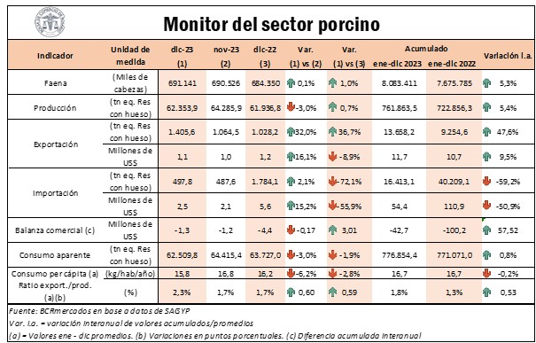 Los indicadores de la producción porcina cerraron el año 2023 confirmando el récord histórico que se venía advirtiendo en los últimos meses. Se confirmó de este modo el treceavo año consecutivo de incremento en la faena de cerdos.