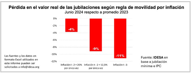 Ajustando en abril con la inflación de enero hará que en junio 2024 las jubilaciones sean aproximadamente un 11% inferior al promedio 2023.